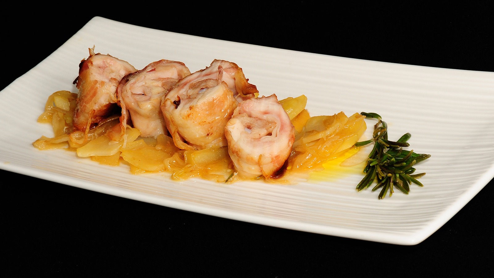 - Pela y pica finamente la cebolla y el diente de ajo, asegurándote de que sean del mismo tamaño o más pequeños que la carne.